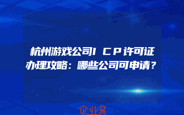 - 杭州游戏公司ICP许可证办理攻略:哪些公司可申请?