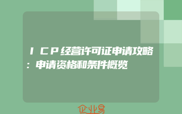 - ICP经营许可证申请攻略:申请资格和条件概览
