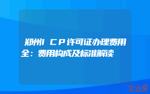 - 郑州ICP许可证办理费用全:费用构成及标准解读