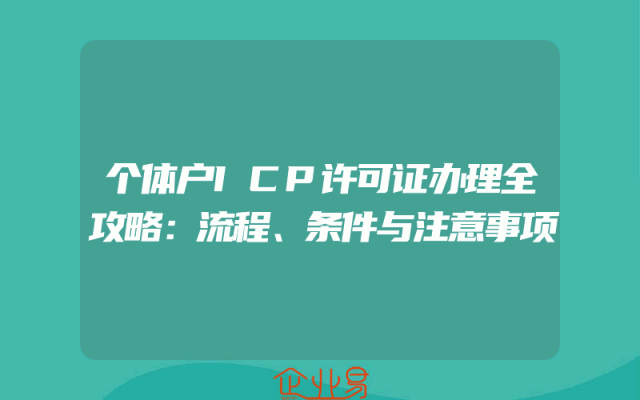 - 个体户ICP许可证办理全攻略:流程、条件与注意事项