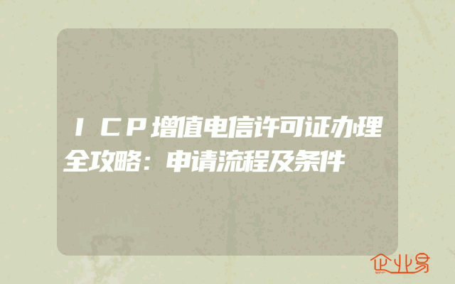 - ICP增值电信许可证办理全攻略:申请流程及条件