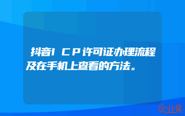 - 抖音ICP许可证办理流程及在手机上查看的方法一、什么是ICP许可证ICP许可证,即互联网内容提供商许可证,是网站运营必备的资质之一。在当下互联网繁荣的时代,许多企业为了扩大影响力、增加品牌曝光度,都会选择开通自己的网站或者应用程序,这就需要