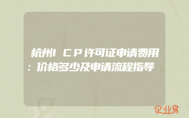 - 杭州ICP许可证申请费用:价格多少及申请流程指导