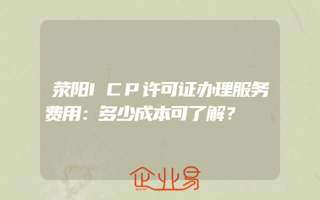 - 荥阳ICP许可证办理服务费用:多少成本可了解?