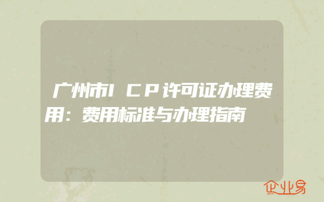 - 广州市ICP许可证办理费用:费用标准与办理指南