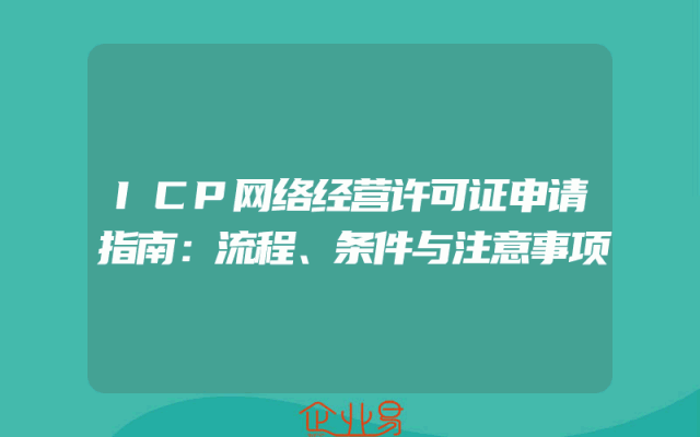 - ICP网络经营许可证申请指南:流程、条件与注意事项