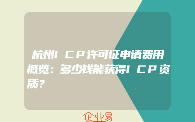- 杭州ICP许可证申请费用概览:多少钱能获得ICP资质?