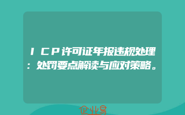 - ICP许可证年报违规处理:处罚要点解读与应对策略一、ICP许可证年报违规的处罚要点解读随着网络信息技术的飞速发展,ICP许可证成为了企业从事互联网相关业务的必备证件。在进行ICP许可证年报时,一些企业可能会因为不了解政策规定或者疏忽导致违规