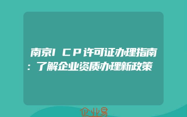 - 南京ICP许可证办理指南:了解企业资质办理新政策