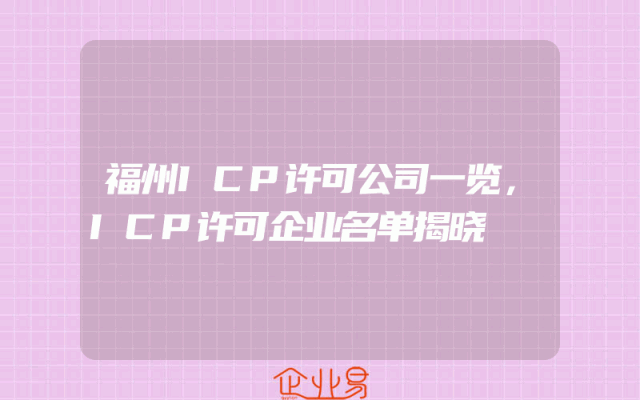 - 福州ICP许可公司一览,ICP许可企业名单揭晓