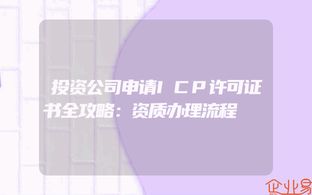 - 投资公司申请ICP许可证书全攻略:资质办理流程