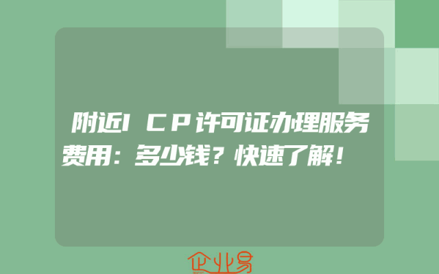 - 附近ICP许可证办理服务费用:多少钱?快速了解!