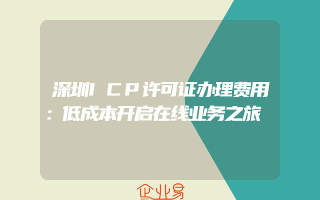 - 深圳ICP许可证办理费用:低成本开启在线业务之旅