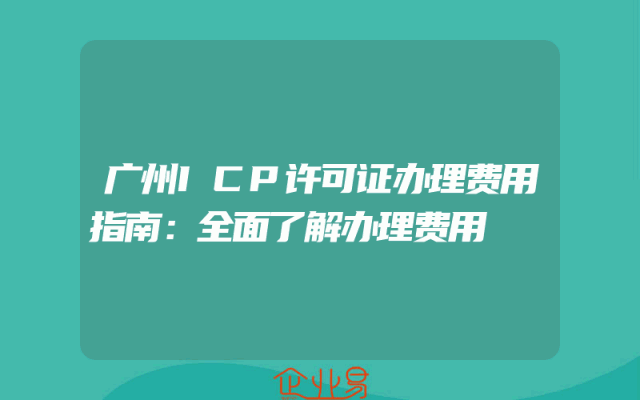 - 广州ICP许可证办理费用指南:全面了解办理费用