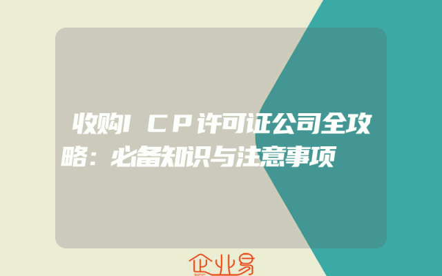 - 收购ICP许可证公司全攻略:必备知识与注意事项