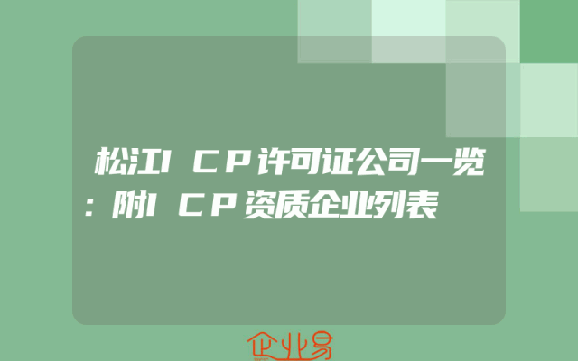 - 松江ICP许可证公司一览:附ICP资质企业列表
