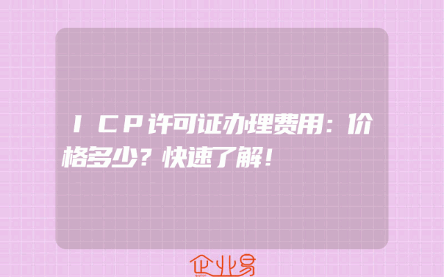 - ICP许可证办理费用:多少钱拿下ICP证?