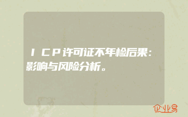 - ICP许可证不年检后果解析:影响与风险分析一、ICP许可证的重要性及其年检规定在当今互联网时代,ICP许可证作为企业互联网经营行为的合法通行证,具有重要意义。它不仅确保了企业依法经营,更是企业进行互联网业务的基础资质。ICP许可证的年检则是