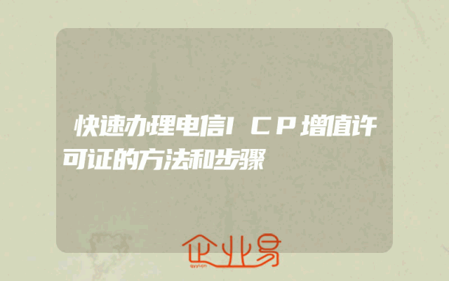 - 快速办理电信ICP增值许可证的方法和步骤详解了解ICP增值许可证电信ICP增值许可证,全称为“互联网内容提供商(ICP)增值电信业务经营许可证”,是企业在互联网上从事特定业务如信息发布、电子商务等时必须具备的一项资质。对于想要在互联网行业开