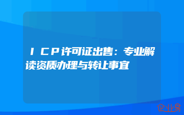 - ICP许可证出售:企业资质办理政策及策略解读