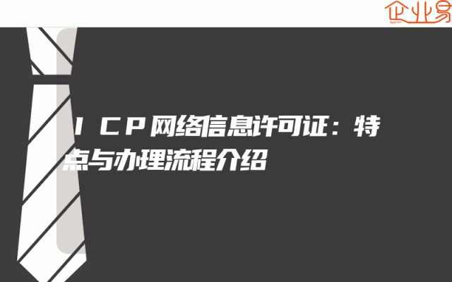 - ICP网络信息许可证详解:特点与办理流程介绍一、ICP网络信息许可证的特点ICP网络信息许可证,全称为“中华人民共和国增值电信业务经营许可证互联网信息服务业务”,是中国对互联网信息服务提供商所提供的信息服务进行管理和规范的证照之一。其主要