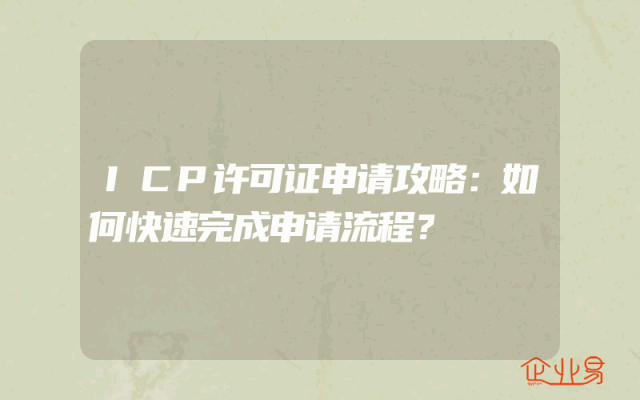 - ICP许可证申请攻略:如何快速完成申请流程?