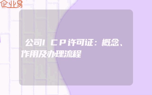 - 公司ICP许可证详解:概念、作用及办理流程一、ICP许可证的概念ICP许可证,即互联网信息服务业务经营许可证,是互联网信息服务企业合法经营的凭证。它是根据国家相关法律法规的规定,由地方政府互联网信息服务主管部门颁发的一种行政许可。二、ICP