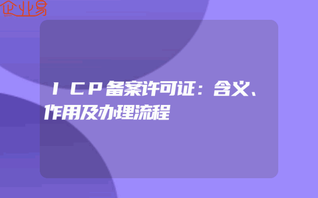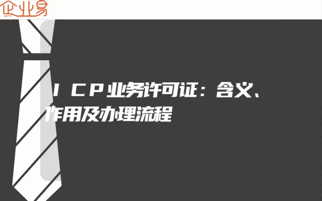 - ICP业务许可证详解:含义、作用及办理流程一、ICP业务许可证的含义ICP业务许可证,全称为“互联网信息服务提供者经营许可证”,是国务院信息化工作办公室对互联网信息服务提供者进行业务管理的必要手段。该许可证主要针对互联网信息服务提供者,包括