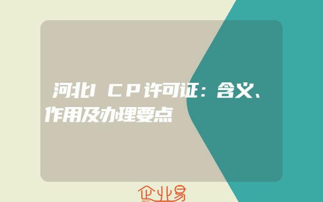 - 河北ICP许可证详解:含义、作用及办理要点一、ICP许可证的含义ICP许可证,即互联网信息服务提供商经营许可证,是中华人民共和国针对互联网信息服务提供商颁发的一种法定许可证书。在河北省从事互联网信息服务业务的单位和个人,必须申请并获得ICP
