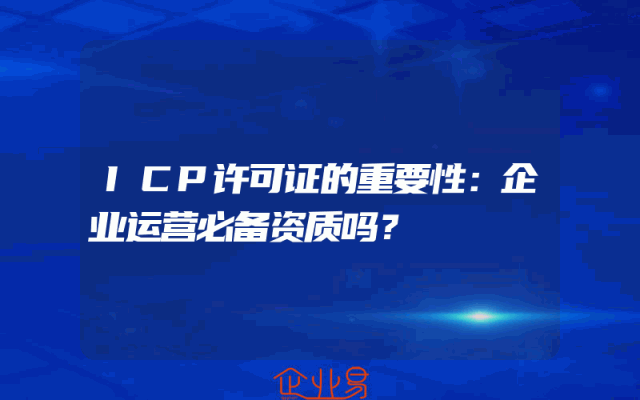 - ICP许可证的重要性:企业运营必备资质吗?一、ICP许可证概述随着互联网的快速发展,线上业务已经成为众多企业发展的重中之重。在这个数字化的时代,企业的在线活动逐渐频繁,为了满足这种业务的需求,ICP许可证成为了一种不可或缺的资质。ICP许可