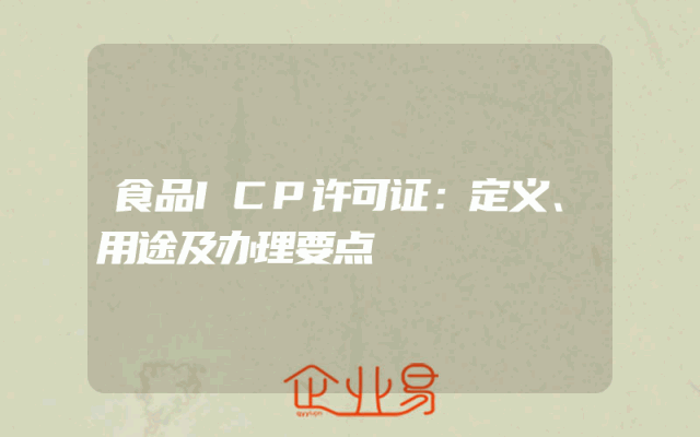 - 食品ICP许可证详解:定义、用途及办理要点一、ICP许可证的定义ICP许可证,即增值电信业务经营许可证,是指国家对互联网信息服务提供商(ICP,即InternetContentProvider)实施的一种资质管理。对于涉及食品领域的ICP许