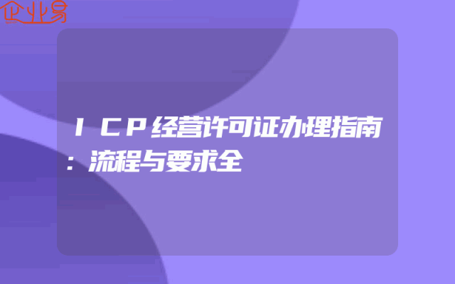 - ICP经营许可证办理指南:流程与要求全解析一、ICP经营许可证概述ICP经营许可证,即增值电信业务经营许可证,是互联网内容提供商(ICP)合法经营的资质证明。对于在互联网上提供信息服务的公司,如门户网站、电商网站等,持有ICP经营许可证是开