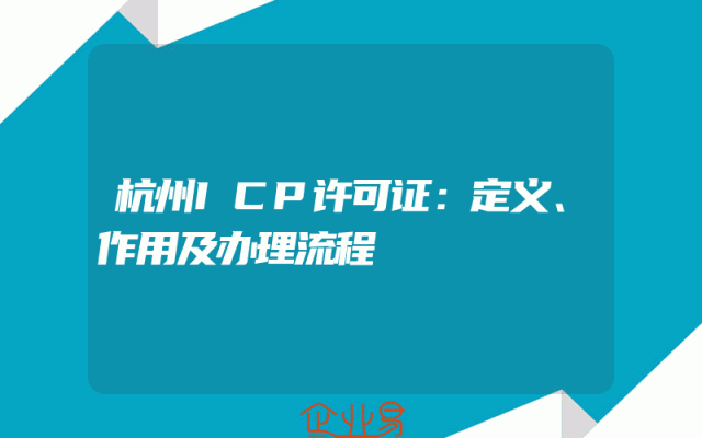 - 杭州ICP许可证详解:定义、作用及办理流程一、ICP许可证的定义ICP许可证,即增值电信业务经营许可证,是指国家对互联网信息服务提供商颁发的一种资质许可。这是评估企业是否有能力提供互联网信息服务的标准之一。对于在杭州及全国范围内开展