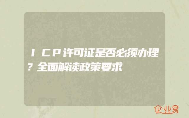 - ICP许可证是否必须办理?全面解读政策要求了解ICP许可证的基本概念ICP许可证,全称为“中华人民共和国增值电信业务经营许可证ICP”,是互联网信息服务提供者从事互联网信息服务的资质证明。对于经营性