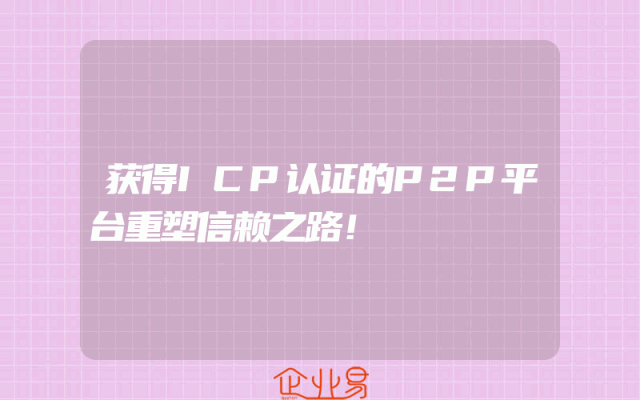 - 获得ICP认证的P2P平台重塑信赖之路!