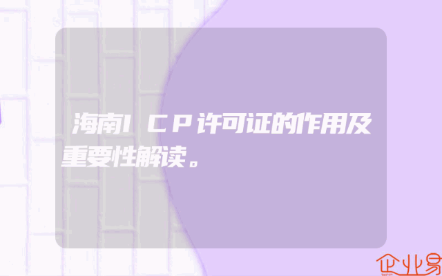- 海南ICP许可证的作用及重要性解读。