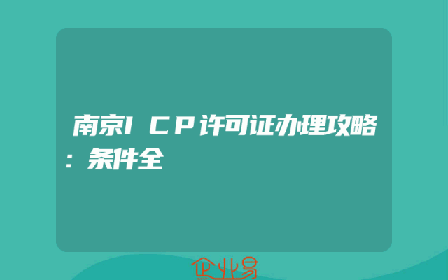 - 南京ICP许可证办理攻略:条件全