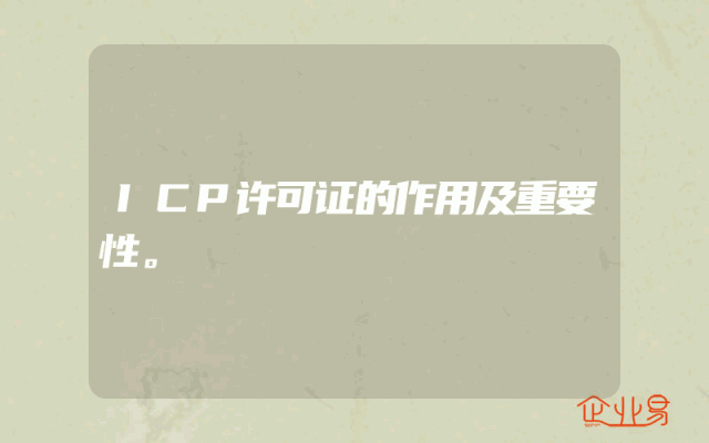 - ICP许可证的作用及重要性解析一、ICP许可证概述ICP许可证,即互联网信息服务业务经营许可证,是互联网信息服务行业的合法经营凭证。随着互联网信息技术的快速发展,ICP许可证已成为企业开展互联网业务的重要资质之一。ICP许可证不仅是对网站合
