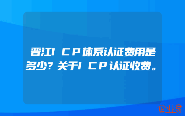 - 晋江ICP体系认证费用是多少?关于ICP认证收费。