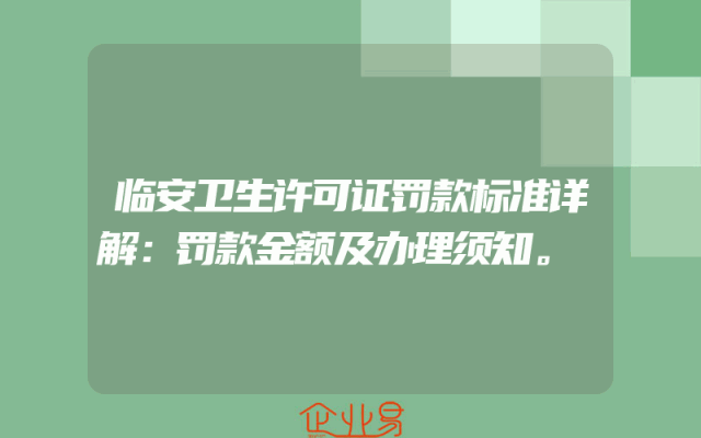 - 临安卫生许可证罚款标准详解:罚款金额及办理须知。