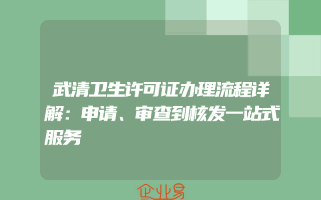 - 武清卫生许可证办理流程详解:申请、审查到核发一站式服务