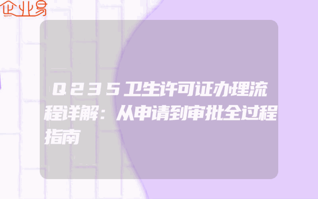 - Q235卫生许可证办理流程详解:从申请到审批全过程指南