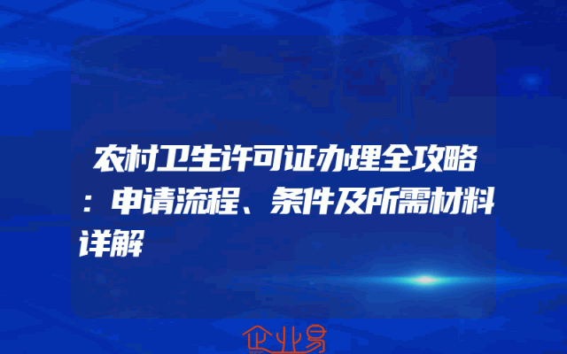 - 农村卫生许可证办理全攻略:申请流程、条件及所需材料详解