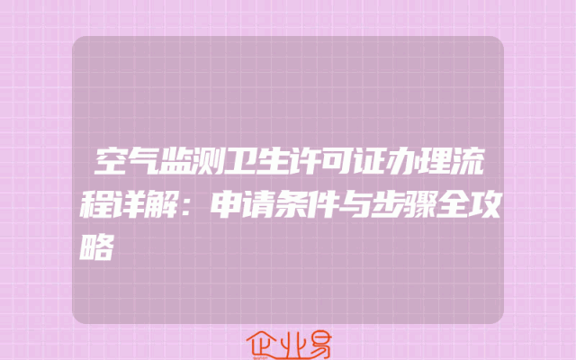 - 空气监测卫生许可证办理流程详解:申请条件与步骤全攻略