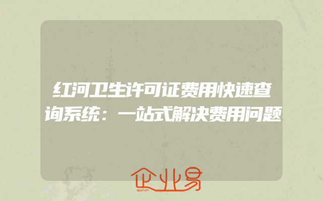 - 红河卫生许可证费用快速查询系统:一站式解决费用问题