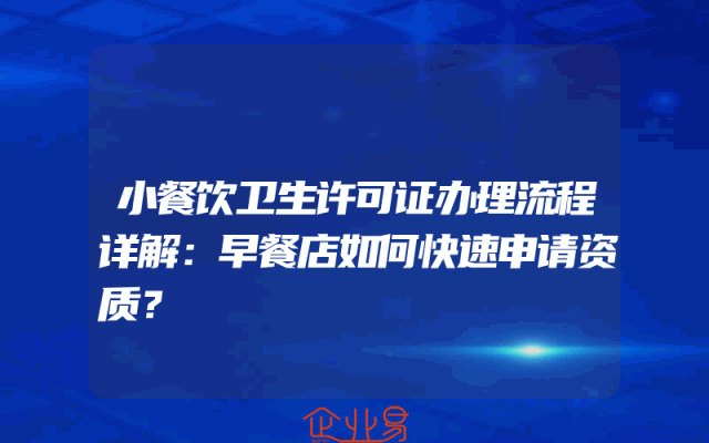 - 小餐饮卫生许可证办理流程详解:早餐店如何快速申请资质?