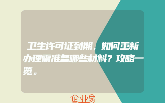 - 卫生许可证到期,如何重新办理需准备哪些材料?攻略一览。