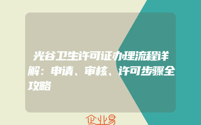 - 光谷卫生许可证办理流程详解:申请、审核、许可步骤全攻略