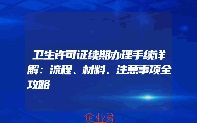 - 卫生许可证续期办理手续详解:流程、材料、注意事项全攻略