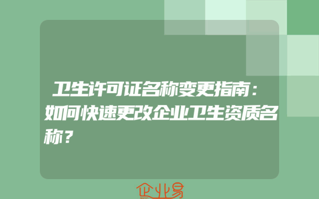 - 卫生许可证名称变更指南:如何快速更改企业卫生资质名称?